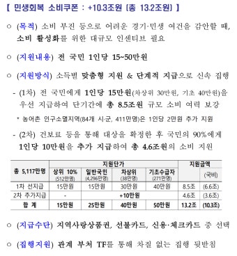전 국민 | 기본 15만원 | 내수 진작을 위한 보편 지급 |